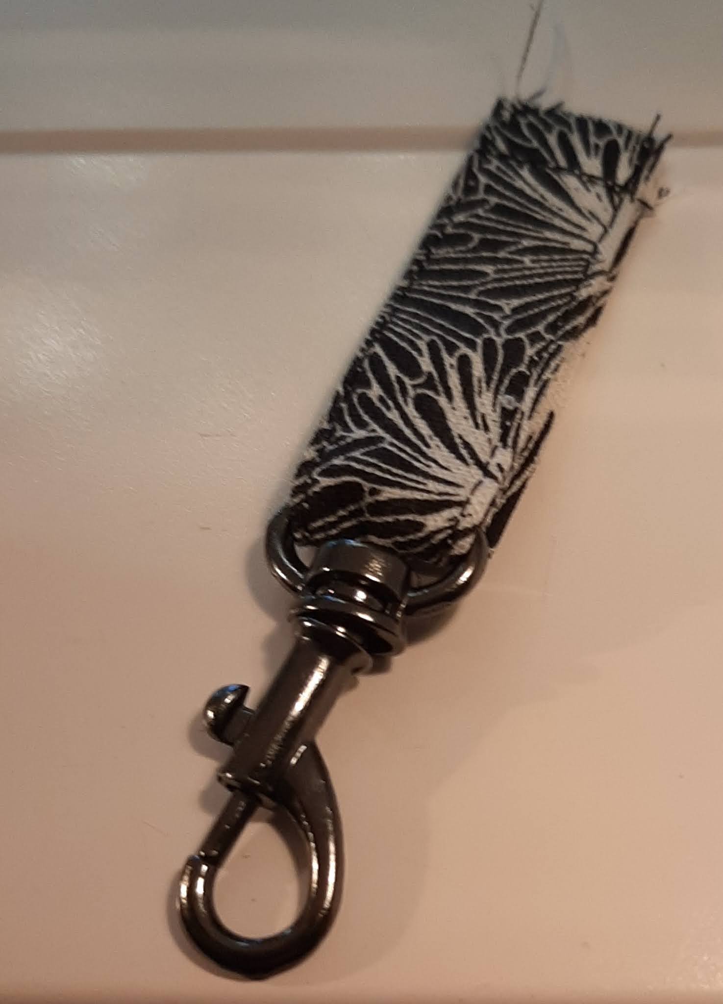 C'est à ce moment que vous pouvez fixer le porte-clé sur le coté droit à 4 cm du bord haut. Vous pouvez aussi choisir de fixer ce porte-clé dans la poche externe fermée par un zip.
